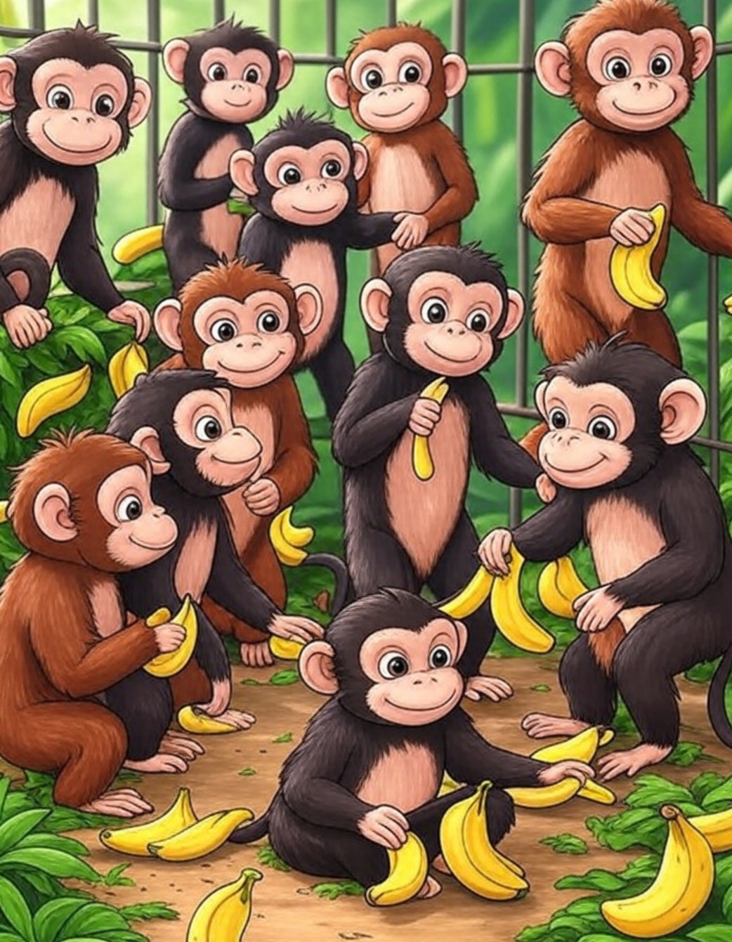 Encerraron a cinco monos en una jaula, en cuyo centro situaron una escalera con unos apetitosos plátanos en lo más alto.