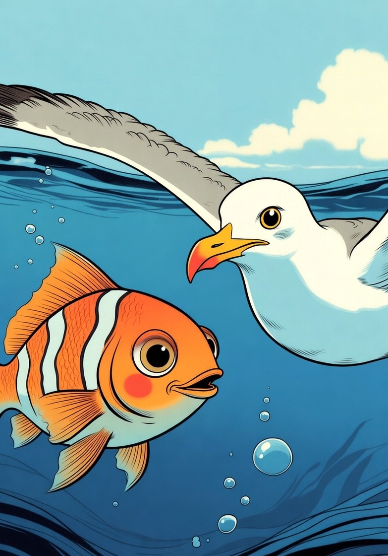 La gaviota sabía que el pez no podía volar.