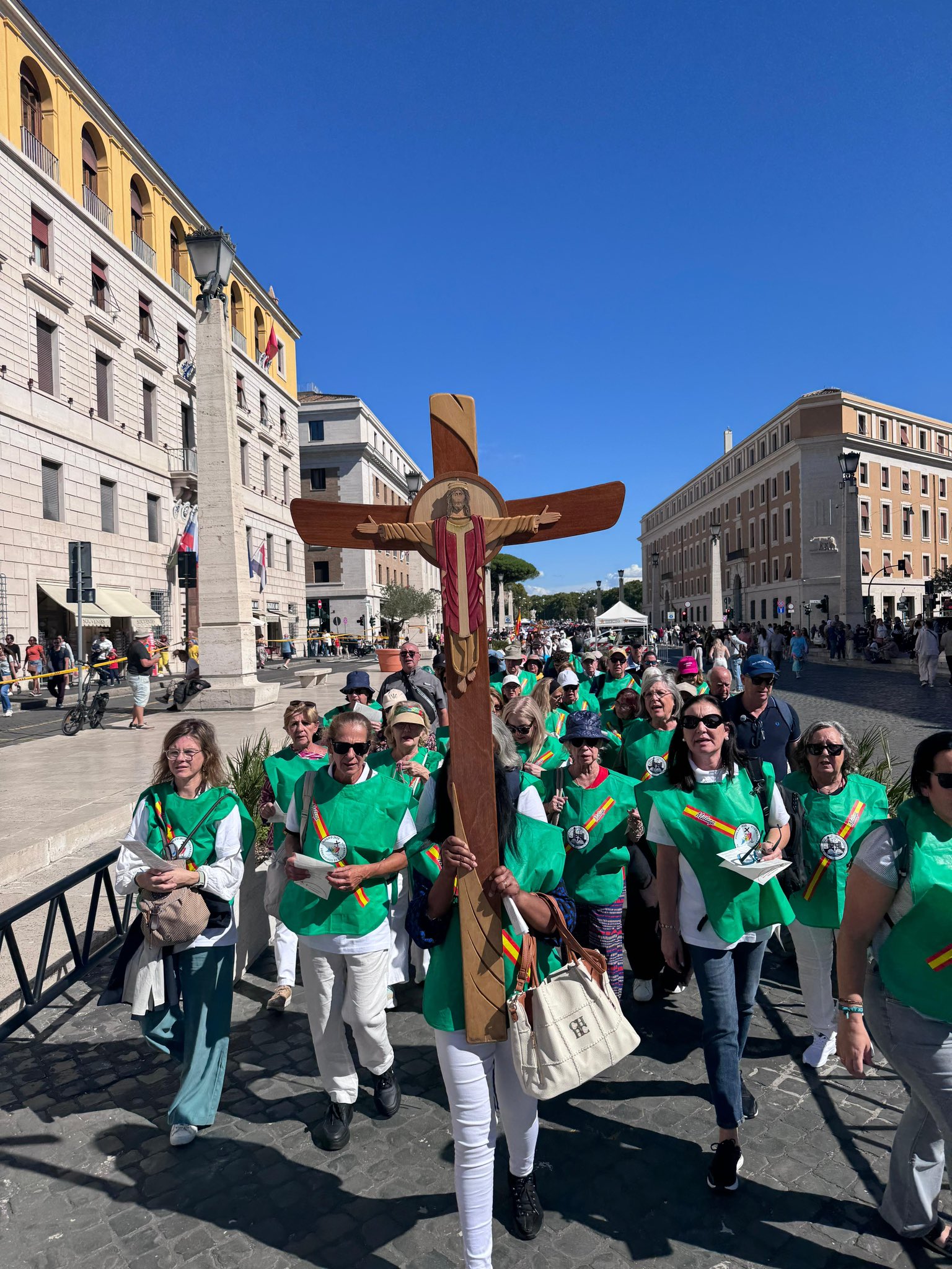 Todos hemos sido educados a creer mediante el testimonio de quien ha creído antes de nosotros. Desde niños y adolescentes, siendo jóvenes, después adultos y también ancianos, los catequistas nos acompañan en la fe compartiendo un camino constante, como han hecho ustedes en estos días, en la peregrinación jubilar. Esta dinámica involucra a toda la Iglesia; en efecto, mientras en Pueblo de Dios genera hombres y mujeres en la fe, «va creciendo en la comprensión de las cosas y de las palabras transmitidas, ya por la contemplación y el estudio de los creyentes, que las meditan en su corazón y, ya por la percepción íntima que experimentan de las cosas espirituales, ya por el anuncio de aquellos que con la sucesión del episcopado recibieron el carisma cierto de la verdad» (Const. dogm. Dei Verbum, 8). En esa comunión, el Catecismo es el “instrumento de viaje” que nos protege del individualismo y las discordias, porque confirma la fe de toda la Iglesia católica. Cada fiel colabora en su obra pastoral escuchando las preguntas, compartiendo las pruebas, sirviendo al deseo de justicia y de verdad que reside en la conciencia humana.